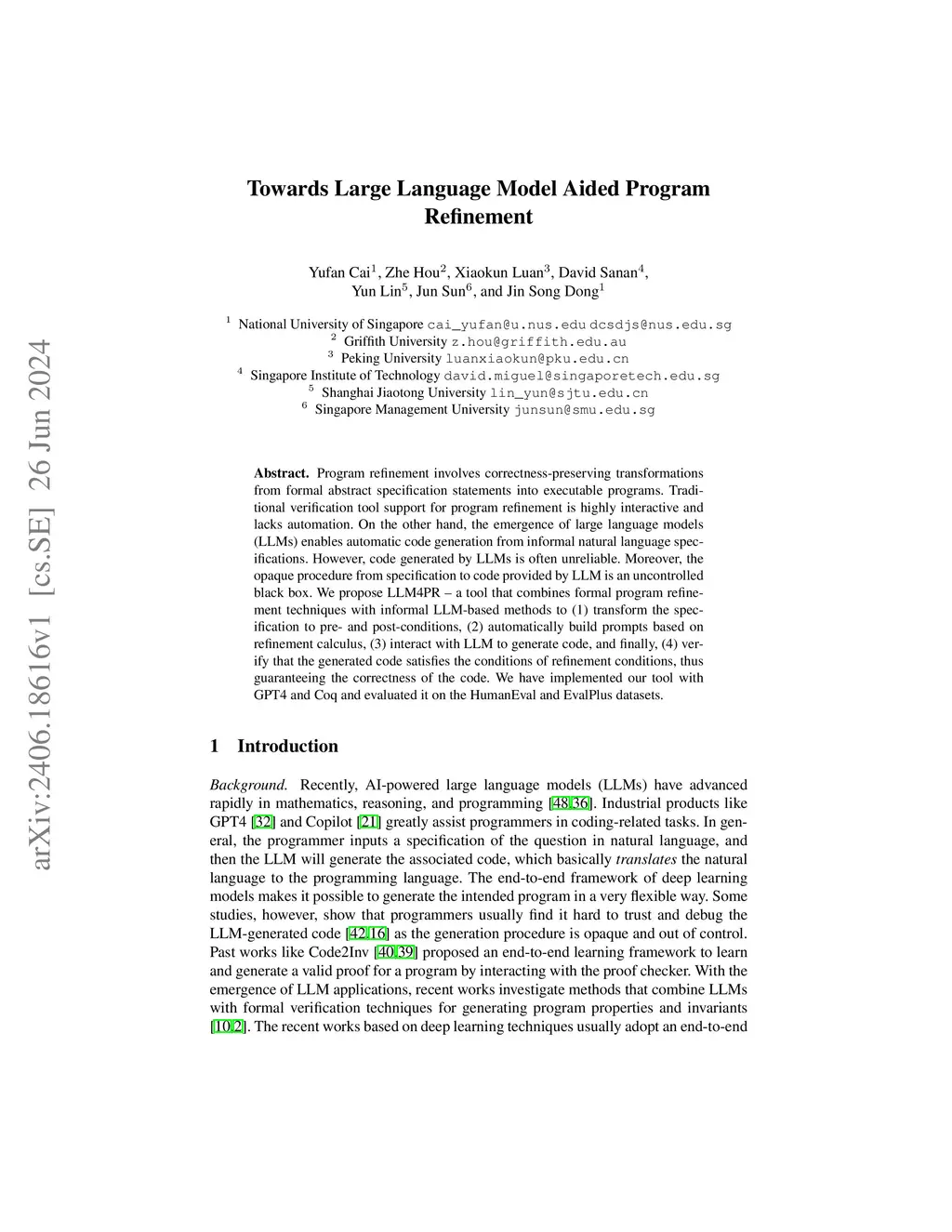 Towards Large Language Model Aided Program Refinement
