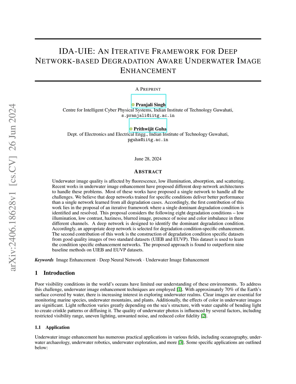 IDA-UIE: An Iterative Framework for Deep Network-based Degradation Aware
