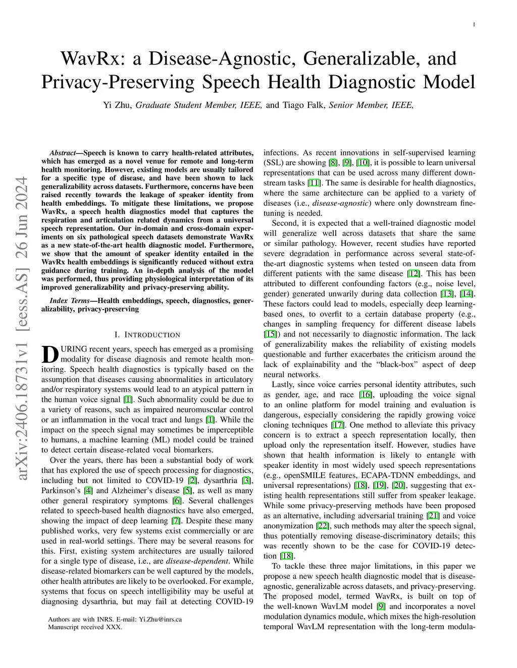 WavRx: a Disease-Agnostic, Generalizable, and Privacy-Preserving Speech