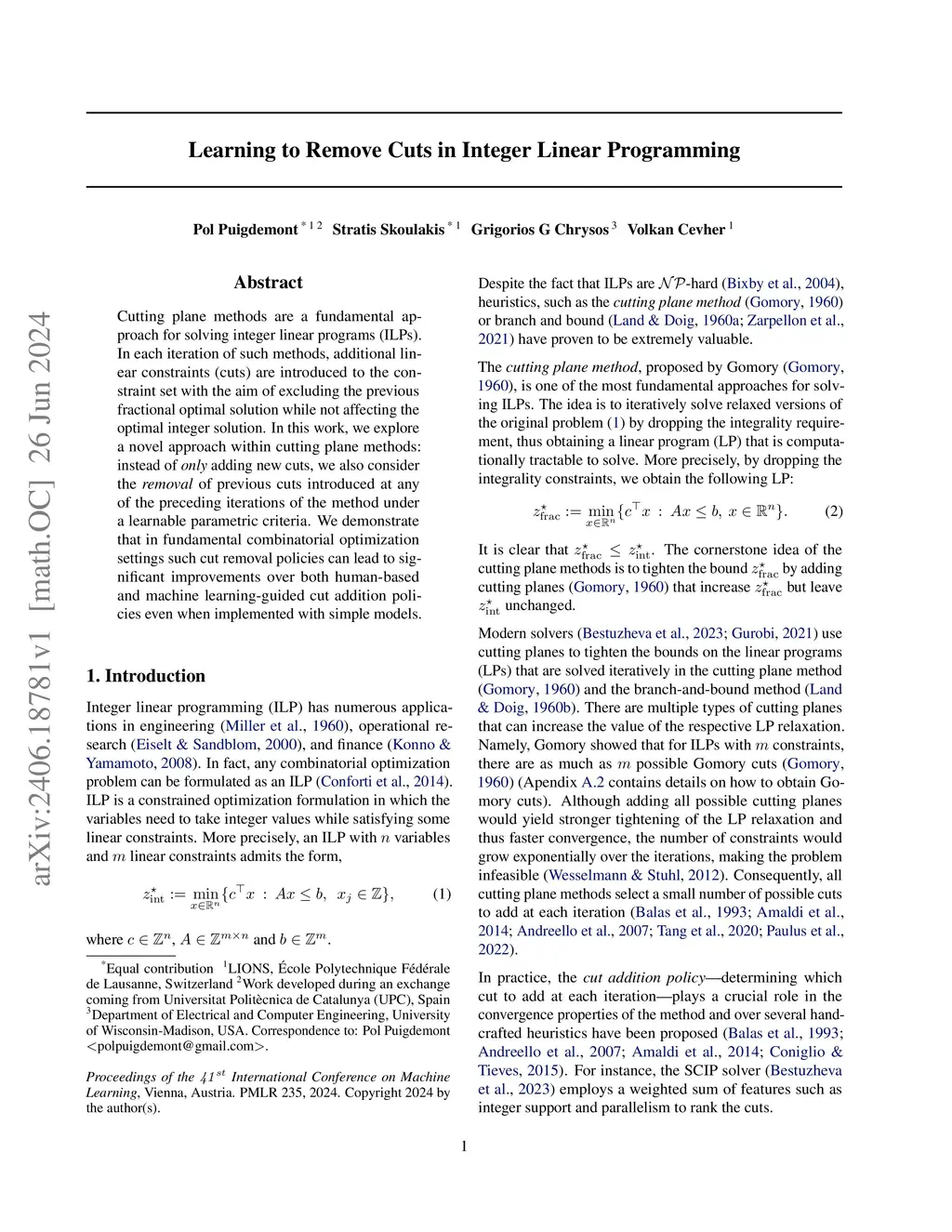 Cutting plane methods are a fundamental approach for solving integer linear programs (ILPs). In each iteration of such methods, additional linear constraints (cuts) are introduced to the constraint set with the aim of excluding the previous fractional optimal solution while not affecting the optimal integer solution. In this work, we explore a novel approach within cutting plane methods: instead of only adding new cuts, we also consider the removal of previous cuts introduced at any of the preceding iterations of the method under a learnable parametric criteria. We demonstrate that in fundamental combinatorial optimization settings such cut removal policies can lead to significant improvements over both human-based and machine learning-guided cut addition policies even when implemented with simple models.