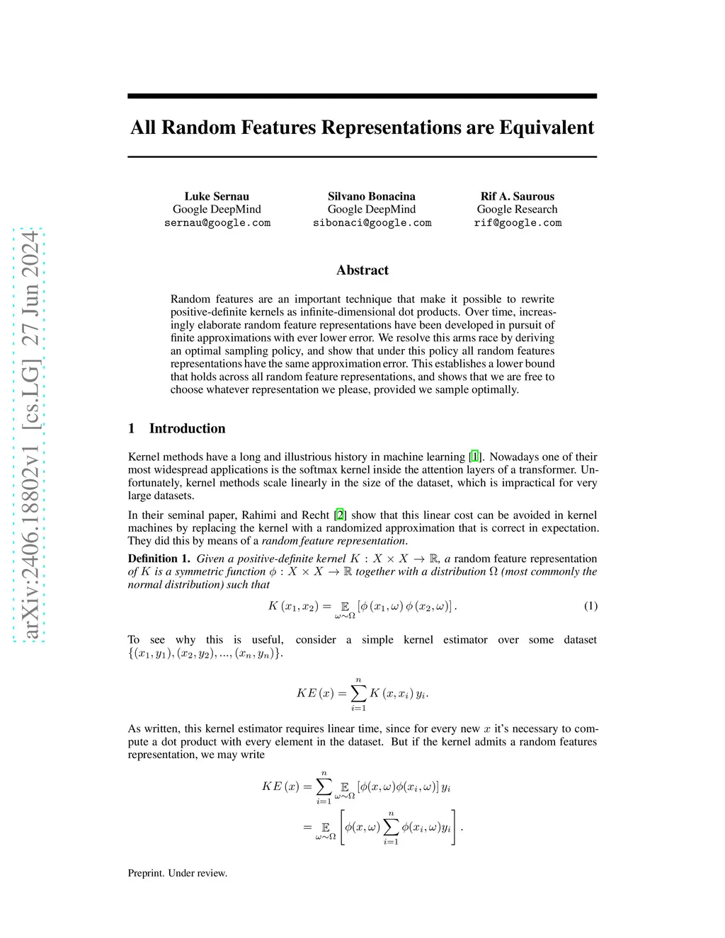 Random features are an important technique that make it possible to rewrite positive-definite kernels as infinite-dimensional dot products. Over time, increasingly elaborate random feature representations have been developed in pursuit of finite approximations with ever lower error. We resolve this arms race by deriving an optimal sampling policy, and show that under this policy all random features representations have the same approximation error. This establishes a lower bound that holds across all random feature representations, and shows that we are free to choose whatever representation we please, provided we sample optimally.