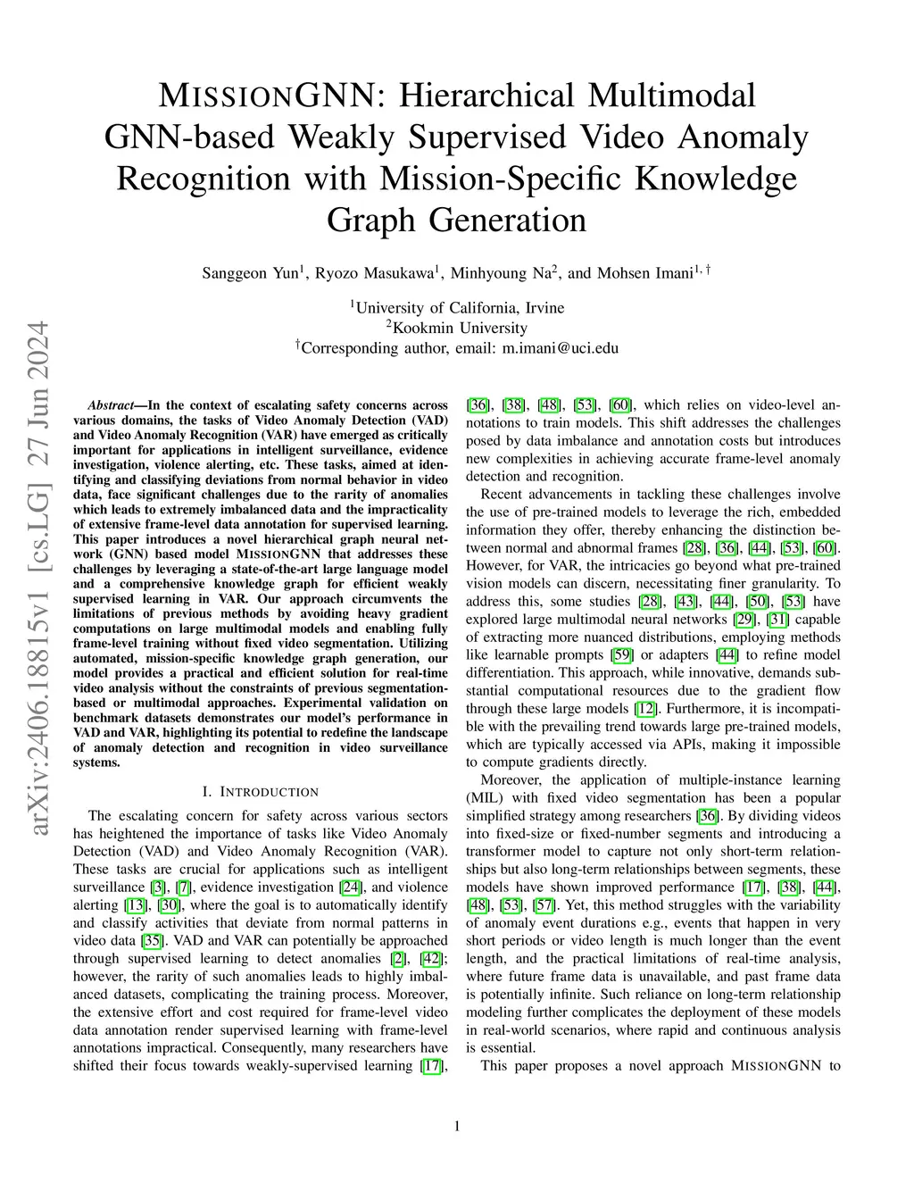 MissionGNN: Hierarchical Multimodal GNN-based Weakly Supervised Video Anomaly Recognition with Mission-Specific Knowledge Graph Generation