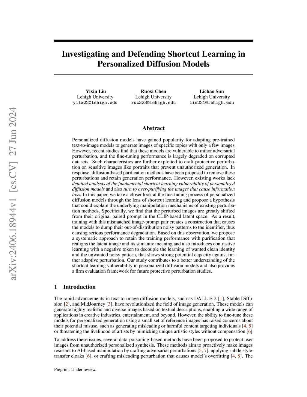 Personalized diffusion models (PDMs) have become prominent for adapting pre-trained text-to-image models to generate images of specific subjects using minimal training data. However, PDMs are susceptible to minor adversarial perturbations, leading to significant degradation when fine-tuned on corrupted datasets. These vulnerabilities are exploited to create protective perturbations that prevent unauthorized image generation. Existing purification methods attempt to red-team the protective perturbation to break the protection but often over-purify images, resulting in information loss. In this work, we conduct an in-depth analysis of the fine-tuning process of PDMs through the lens of shortcut learning. We hypothesize and empirically demonstrate that adversarial perturbations induce a latent-space misalignment between images and their text prompts in the CLIP embedding space. This misalignment causes the model to erroneously associate noisy patterns with unique identifiers during fine-tuning, resulting in poor generalization. Based on these insights, we propose a systematic red-teaming framework that includes data purification and contrastive decoupling learning. We first employ off-the-shelf image restoration techniques to realign images with their original semantic content in latent space. Then, we introduce contrastive decoupling learning with noise tokens to decouple the learning of personalized concepts from spurious noise patterns. Our study not only uncovers shortcut learning vulnerabilities in PDMs but also provides a thorough evaluation framework for developing stronger protection. Our extensive evaluation demonstrates its advantages over existing purification methods and its robustness against adaptive perturbations.