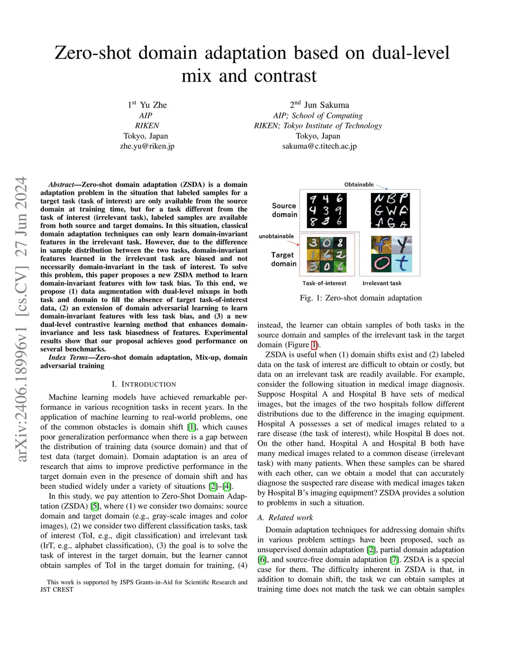 Zero-shot domain adaptation based on dual-level mix and contrast