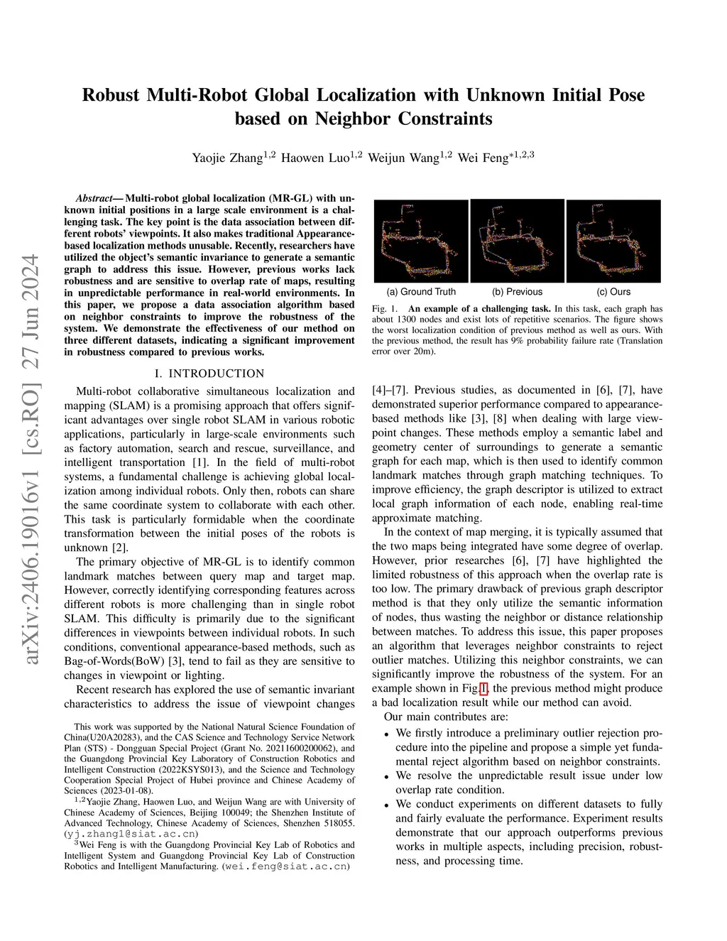 Multi-robot global localization (MR-GL) with unknown initial positions in a large scale environment is a challenging task. The key point is the data association between different robots' viewpoints. It also makes traditional Appearance-based localization methods unusable. Recently, researchers have utilized the object's semantic invariance to generate a semantic graph to address this issue. However, previous works lack robustness and are sensitive to overlap rate of maps, resulting in unpredictable performance in real-world environments. In this paper, we propose a data association algorithm based on neighbor constraints to improve the robustness of the system. We demonstrate the effectiveness of our method on three different datasets, indicating a significant improvement in robustness compared to previous works.