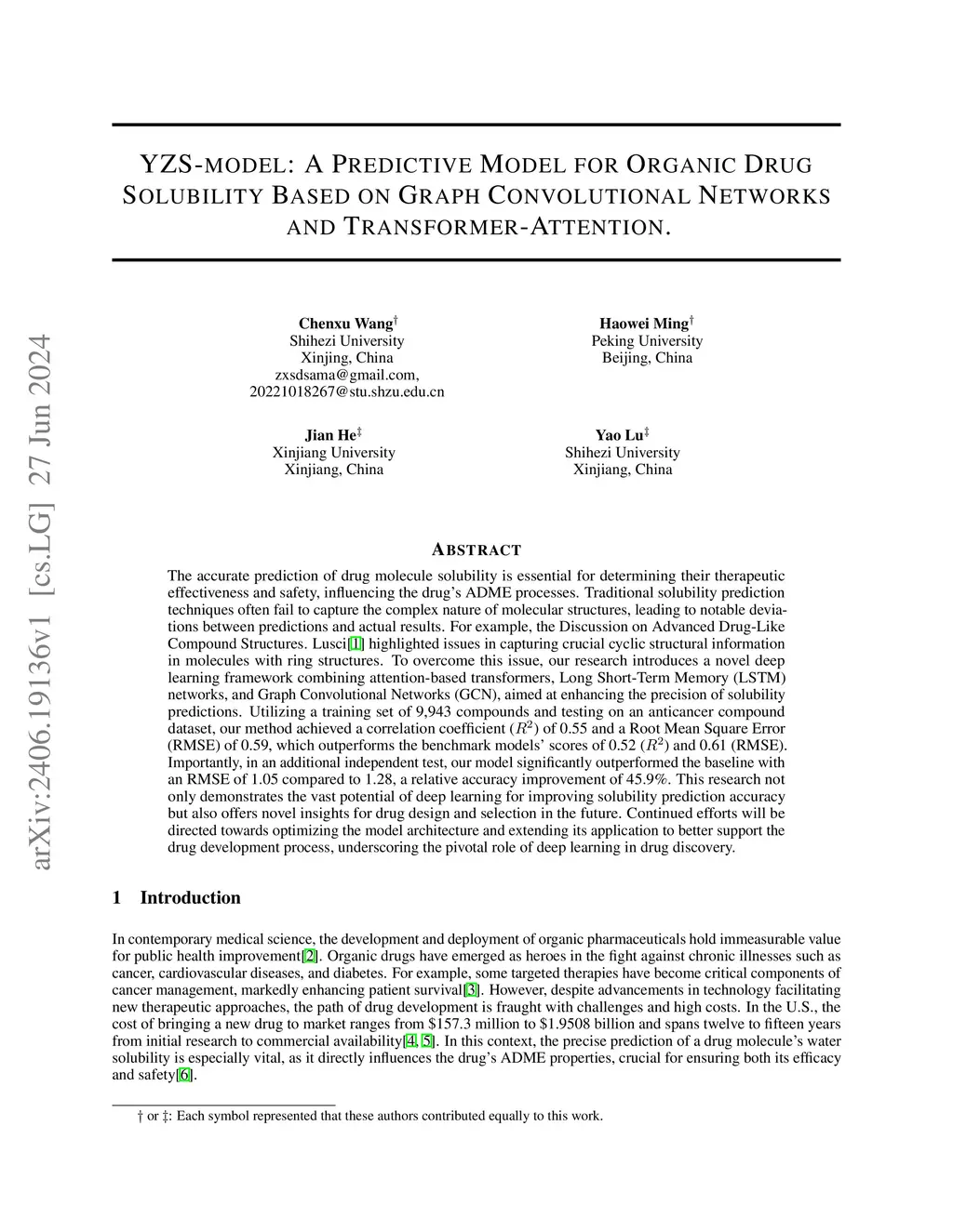 YZS-model: A Predictive Model for Organic Drug Solubility Based on Graph