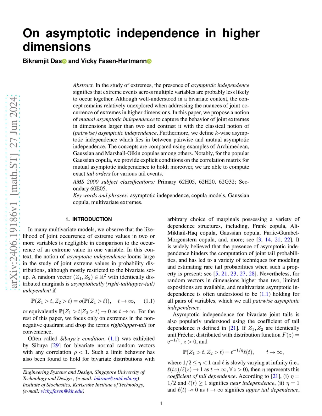 On asymptotic independence in higher dimensions
