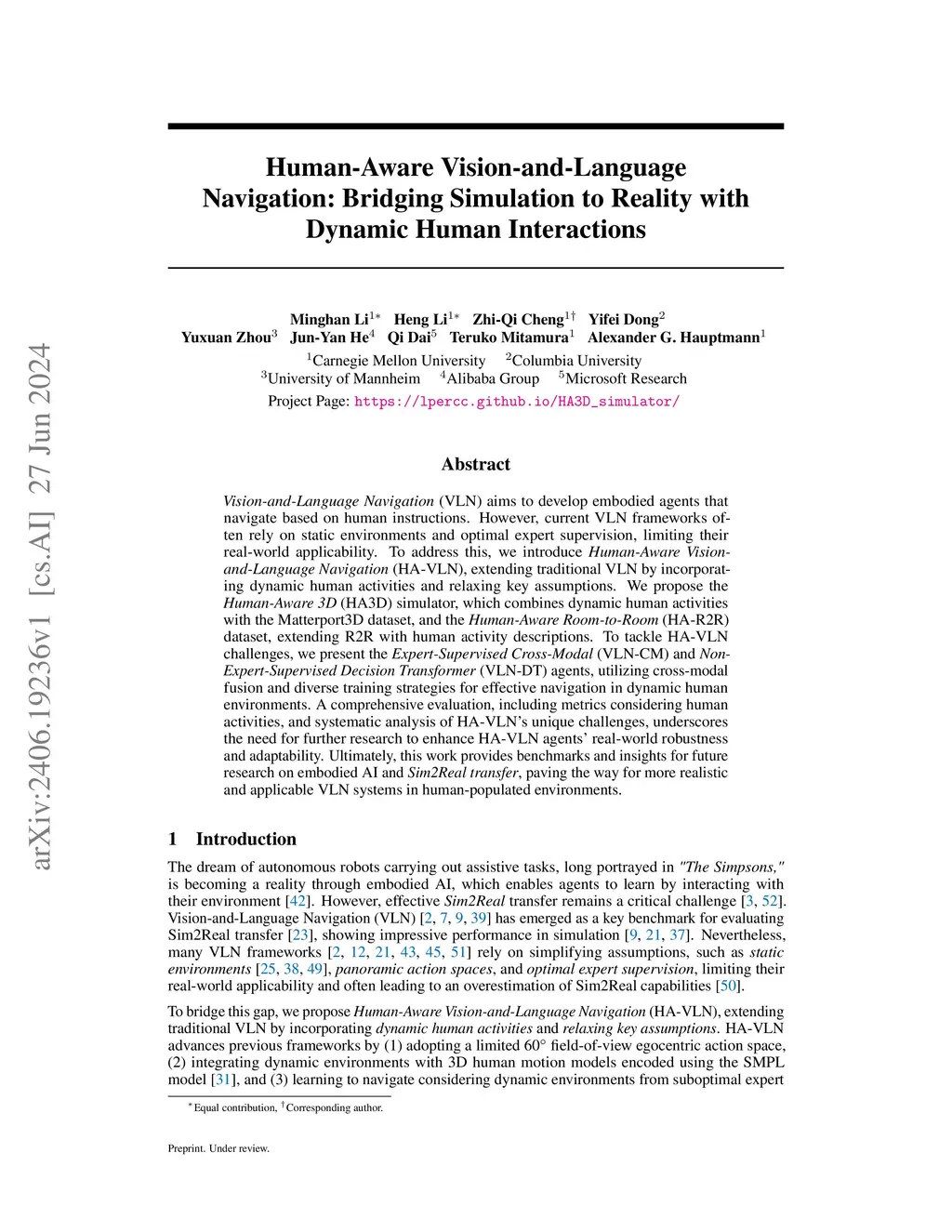 Human-Aware Vision-and-Language Navigation: Bridging Simulation to