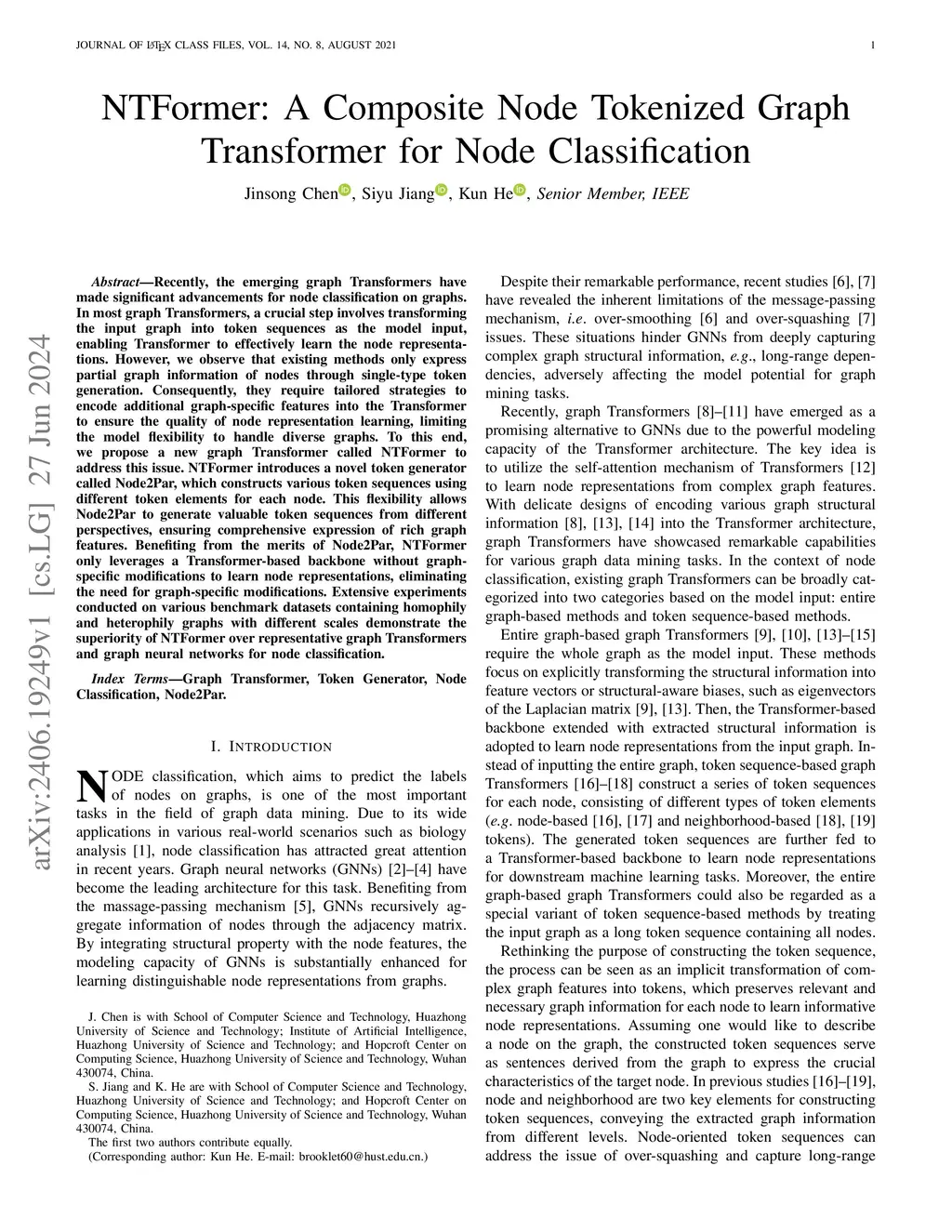 Recently, the emerging graph Transformers have made significant advancements for node classification on graphs. In most graph Transformers, a crucial step involves transforming the input graph into token sequences as the model input, enabling Transformer to effectively learn the node representations. However, we observe that existing methods only express partial graph information of nodes through single-type token generation. Consequently, they require tailored strategies to encode additional graph-specific features into the Transformer to ensure the quality of node representation learning, limiting the model flexibility to handle diverse graphs. To this end, we propose a new graph Transformer called NTFormer to address this issue. NTFormer introduces a novel token generator called Node2Par, which constructs various token sequences using different token elements for each node. This flexibility allows Node2Par to generate valuable token sequences from different perspectives, ensuring comprehensive expression of rich graph features. Benefiting from the merits of Node2Par, NTFormer only leverages a Transformer-based backbone without graph-specific modifications to learn node representations, eliminating the need for graph-specific modifications. Extensive experiments conducted on various benchmark datasets containing homophily and heterophily graphs with different scales demonstrate the superiority of NTFormer over representative graph Transformers and graph neural networks for node classification.