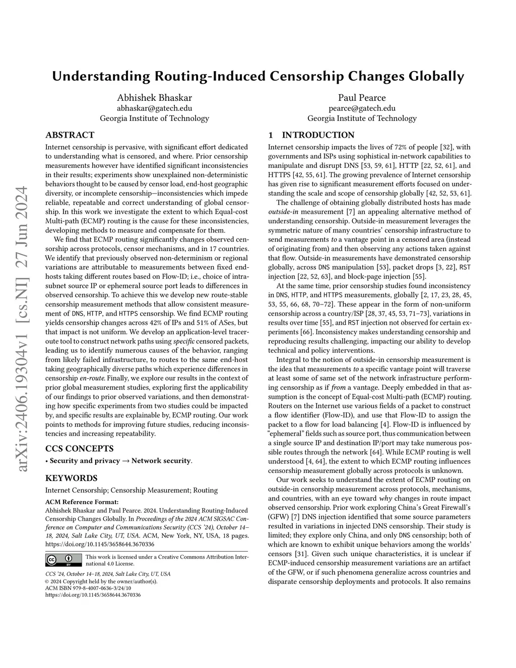 Internet censorship is pervasive, with significant effort dedicated to understanding what is censored, and where. Prior censorship work however have identified significant inconsistencies in their results; experiments show unexplained non-determinism thought to be caused by censor load, end-host geographic diversity, or incomplete censorship -- inconsistencies which impede reliable, repeatable and correct understanding of global censorship. In this work we investigate the extent to which Equal-cost Multi-path (ECMP) routing is the cause for these inconsistencies, developing methods to measure and compensate for them. We find ECMP routing significantly changes observed censorship across protocols, censor mechanisms, and in 17 countries. We identify that previously observed non-determinism or regional variations are attributable to measurements between fixed end-hosts taking different routes based on Flow-ID; i.e., choice of intra-subnet source IP or ephemeral source port leads to differences in observed censorship. To achieve this we develop new route-stable censorship measurement methods that allow consistent measurement of DNS, HTTP, and HTTPS censorship. We find ECMP routing yields censorship changes across 42% of IPs and 51% of ASes, but that impact is not uniform. We identify numerous causes of the behavior, ranging from likely failed infrastructure, to routes to the same end-host taking geographically diverse paths which experience differences in censorship en-route. Finally, we explore our results in the context of prior global measurement studies, exploring first the applicability of our findings to prior observed variations, and then demonstrating how specific experiments from two studies could be impacted by, and specific results are explainable by, ECMP routing. Our work points to methods for improving future studies, reducing inconsistencies and increasing repeatability.