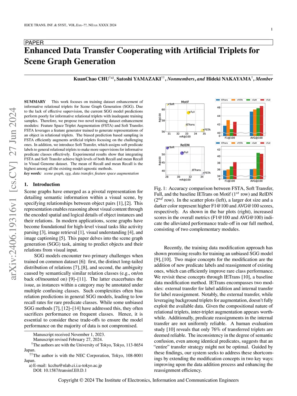 Enhanced Data Transfer Cooperating with Artificial Triplets for Scene