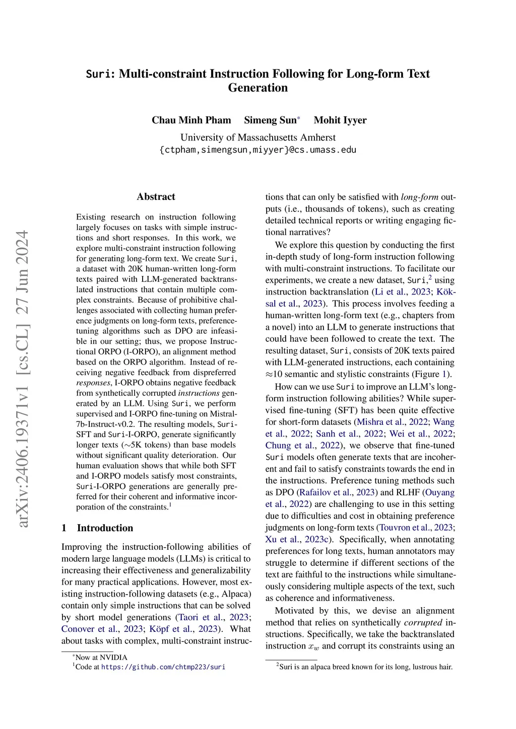 Suri: Multi-constraint Instruction Following for Long-form Text