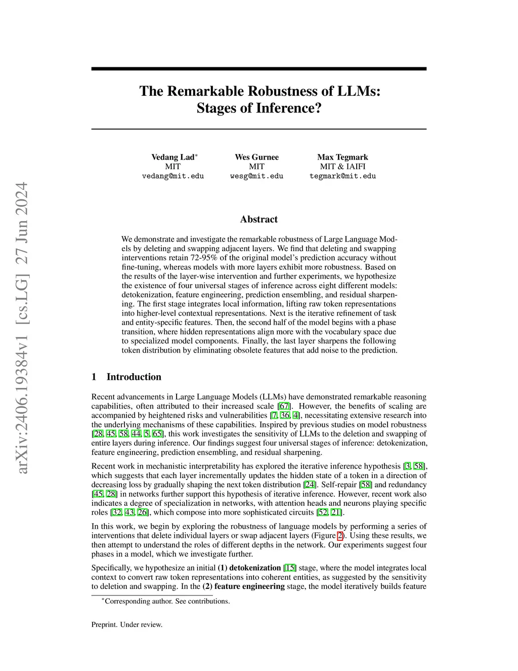 The Remarkable Robustness of LLMs: Stages of Inference?
