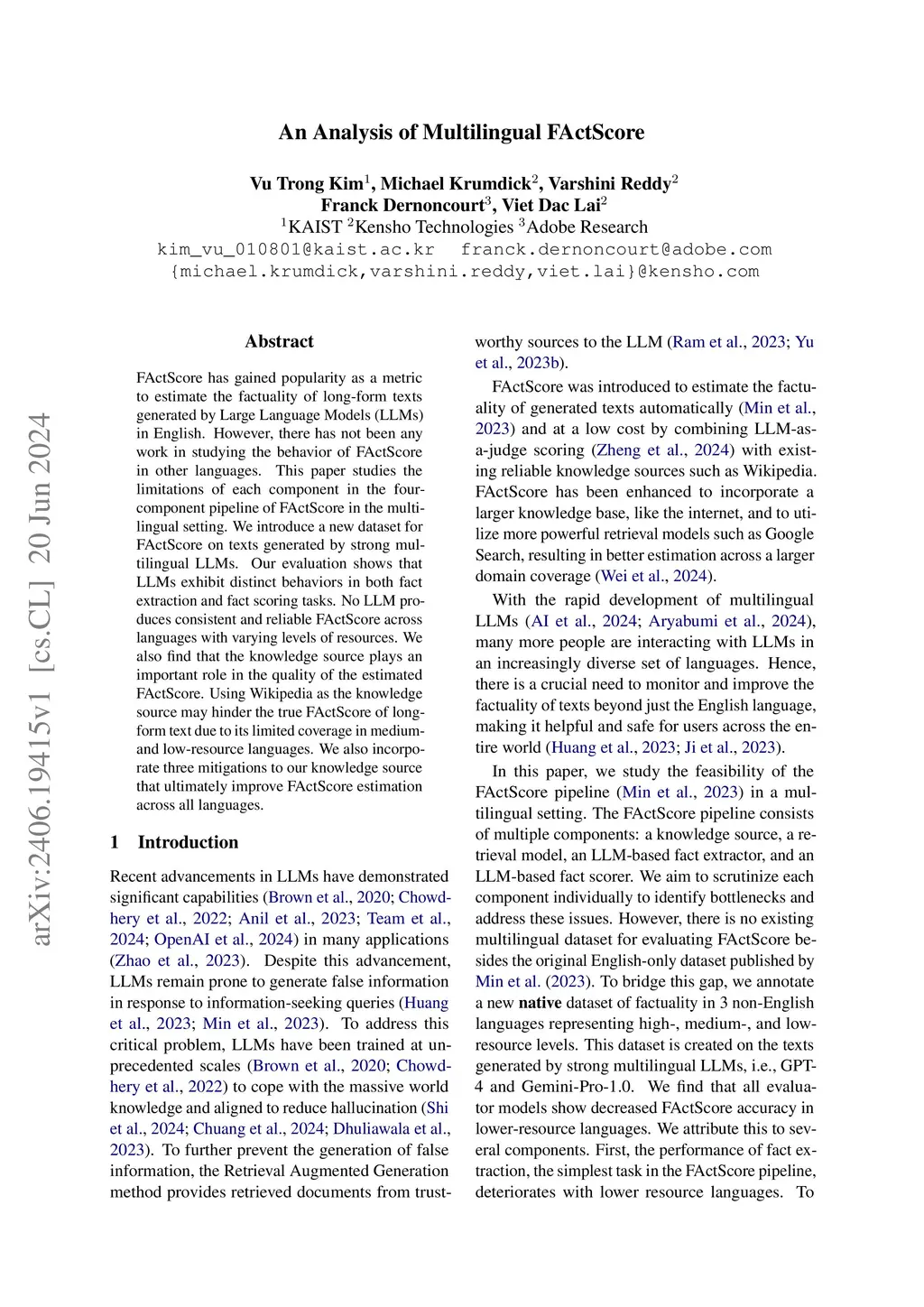 An Analysis of Multilingual FActScore