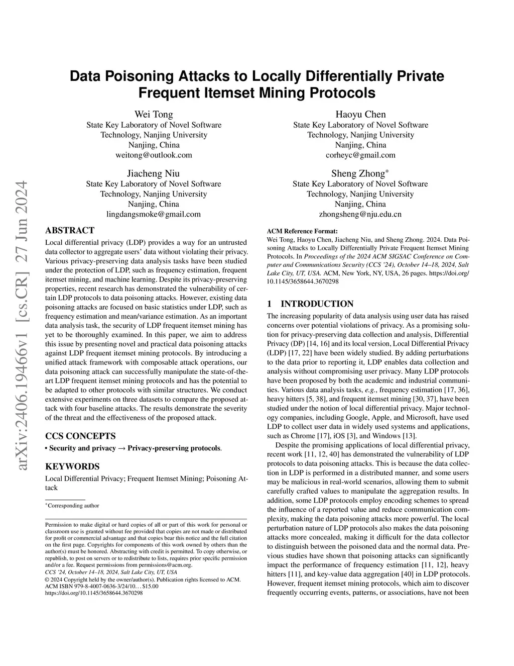 Data Poisoning Attacks to Locally Differentially Private Frequent
