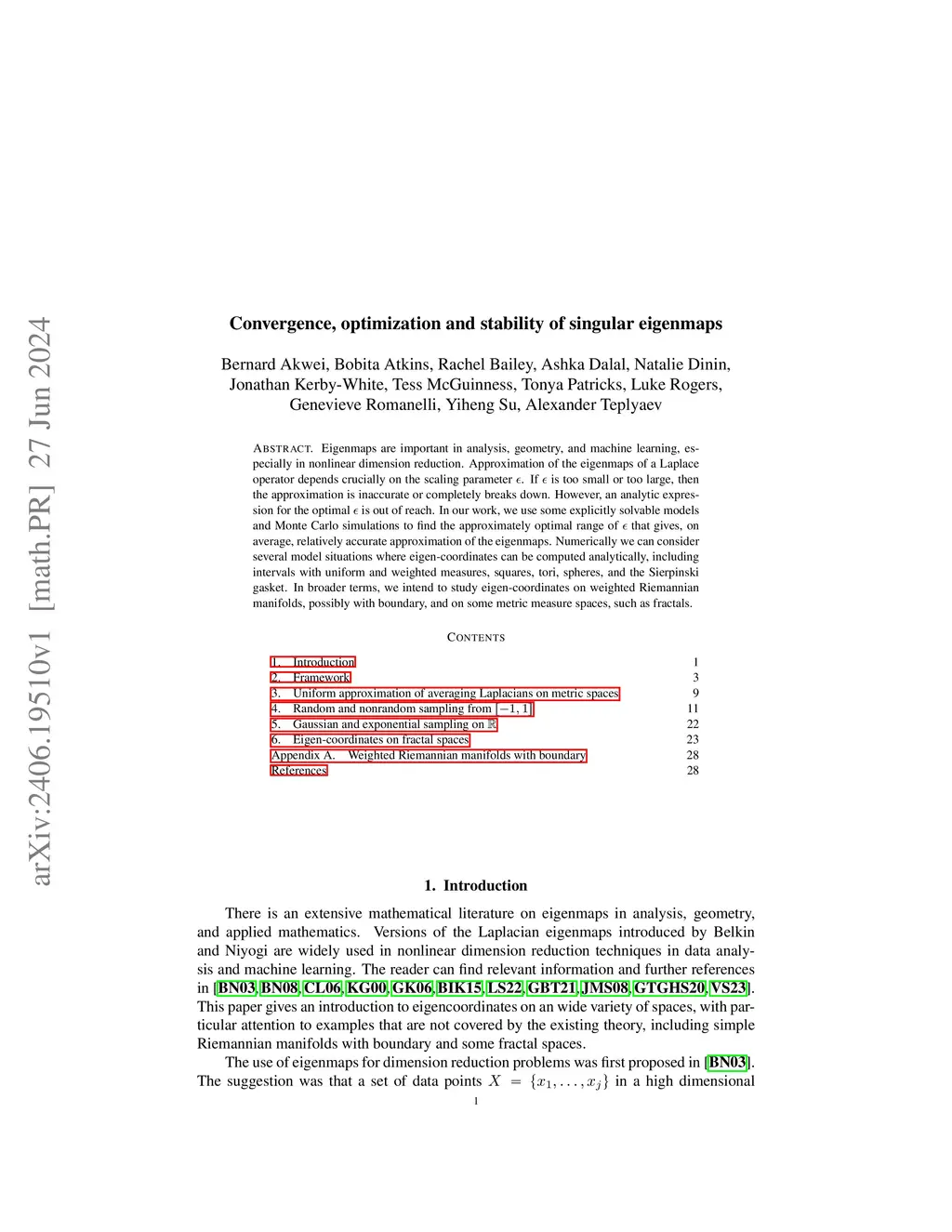 Convergence, optimization and stability of singular eigenmaps