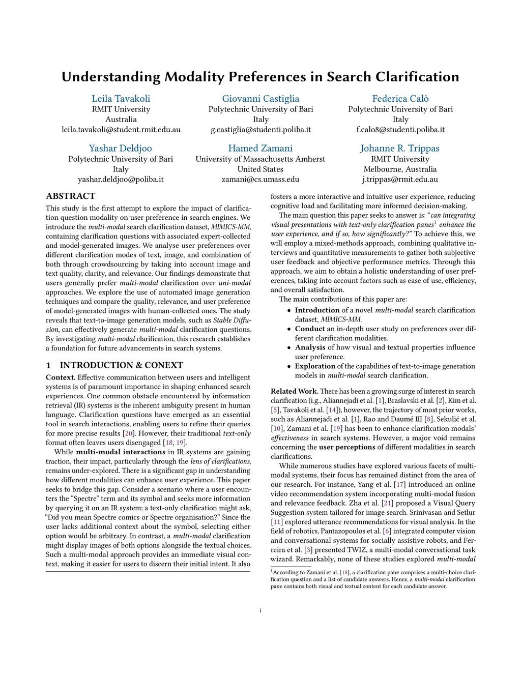 This study is the first attempt to explore the impact of clarification question modality on user preference in search engines. We introduce the multi-modal search clarification dataset, MIMICS-MM, containing clarification questions with associated expert-collected and model-generated images. We analyse user preferences over different clarification modes of text, image, and combination of both through crowdsourcing by taking into account image and text quality, clarity, and relevance. Our findings demonstrate that users generally prefer multi-modal clarification over uni-modal approaches. We explore the use of automated image generation techniques and compare the quality, relevance, and user preference of model-generated images with human-collected ones. The study reveals that text-to-image generation models, such as Stable Diffusion, can effectively generate multi-modal clarification questions. By investigating multi-modal clarification, this research establishes a foundation for future advancements in search systems.
