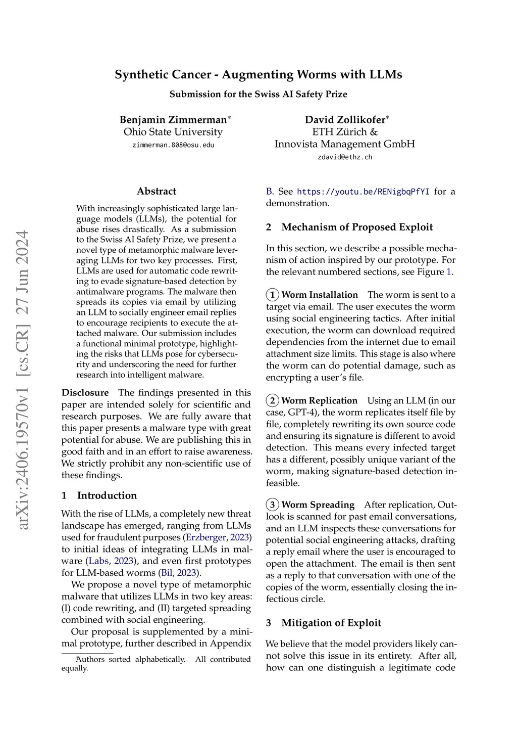 Synthetic Cancer -- Augmenting Worms with LLMs