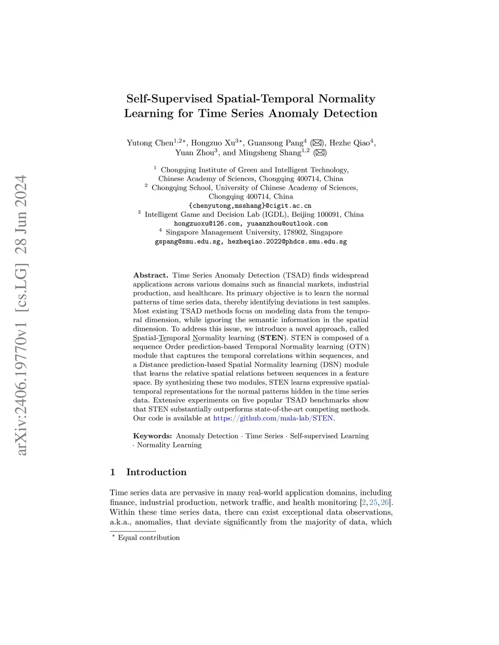 Self-Supervised Spatial-Temporal Normality Learning for Time Series