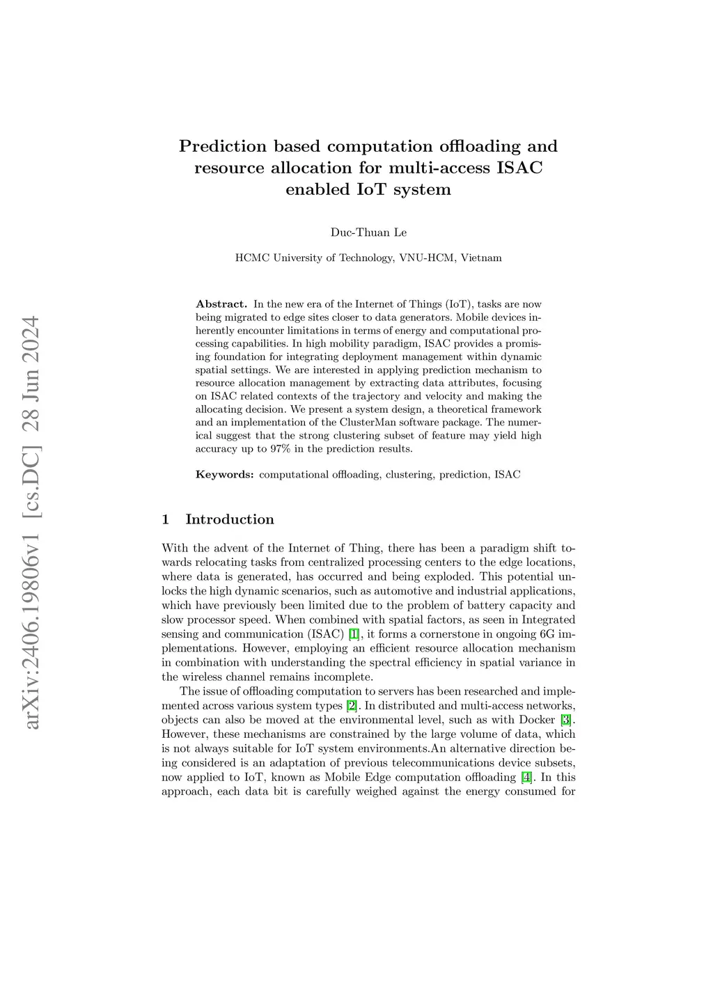 In the new era of the Internet of Things (IoT), tasks are now being migrated to edge sites closer to data generators. Mobile devices inherently encounter limitations in terms of energy and computational processing capabilities. In high mobility paradigm, ISAC provides a promising foundation for integrating deployment management within dynamic spatial settings. We are interested in applying prediction mechanism to resource allocation management by extracting data attributes, focusing on ISAC related contexts of the trajectory and velocity and making the allocating decision. We present a system design, a theoretical framework and an implementation of the ClusterMan software package. The numerical suggests that the strong clustering subset of feature may yield high accuracy up to 97\% in the prediction results.