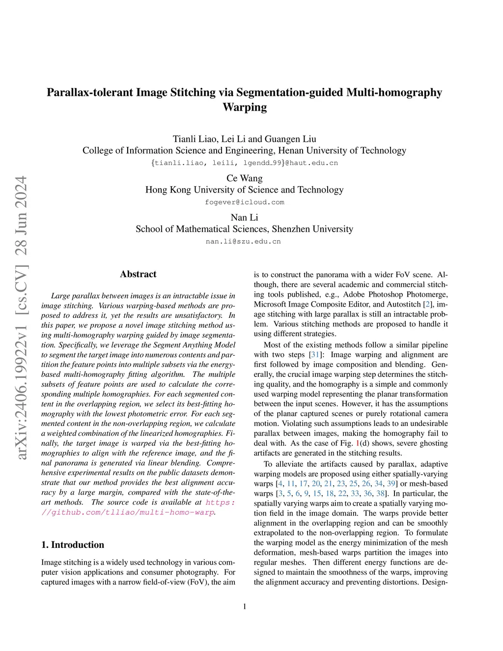 Multi-homography Warping