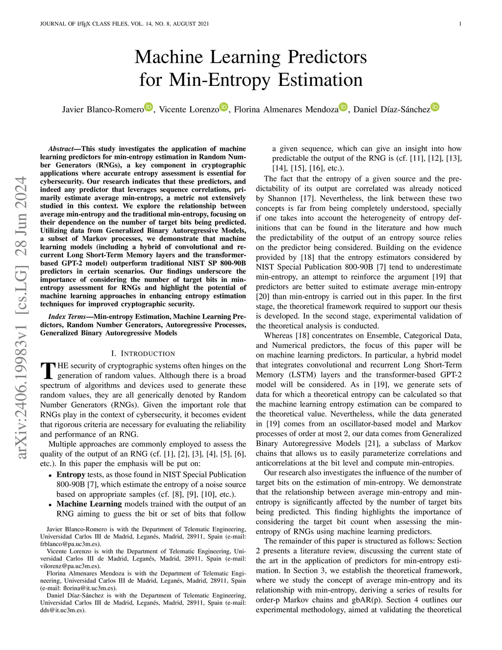 This study investigates the application of machine learning predictors for min-entropy estimation in Random Number Generators (RNGs), a key component in cryptographic applications where accurate entropy assessment is essential for cybersecurity. Our research indicates that these predictors, and indeed any predictor that leverages sequence correlations, primarily estimate average min-entropy, a metric not extensively studied in this context. We explore the relationship between average min-entropy and the traditional min-entropy, focusing on their dependence on the number of target bits being predicted. Utilizing data from Generalized Binary Autoregressive Models, a subset of Markov processes, we demonstrate that machine learning models (including a hybrid of convolutional and recurrent Long Short-Term Memory layers and the transformer-based GPT-2 model) outperform traditional NIST SP 800-90B predictors in certain scenarios. Our findings underscore the importance of considering the number of target bits in min-entropy assessment for RNGs and highlight the potential of machine learning approaches in enhancing entropy estimation techniques for improved cryptographic security.