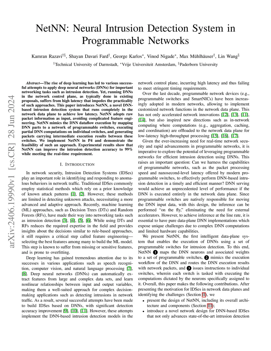 NetNN: Neural Intrusion Detection System in Programmable Networks