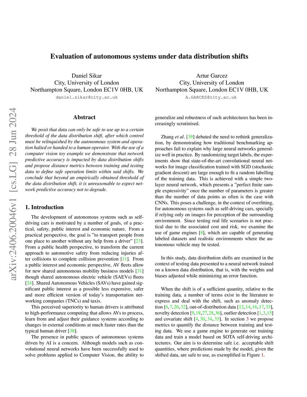 We posit that data can only be safe to use up to a certain threshold of the data distribution shift, after which control must be relinquished by the autonomous system and operation halted or handed to a human operator. With the use of a computer vision toy example we demonstrate that network predictive accuracy is impacted by data distribution shifts and propose distance metrics between training and testing data to define safe operation limits within said shifts. We conclude that beyond an empirically obtained threshold of the data distribution shift, it is unreasonable to expect network predictive accuracy not to degrade