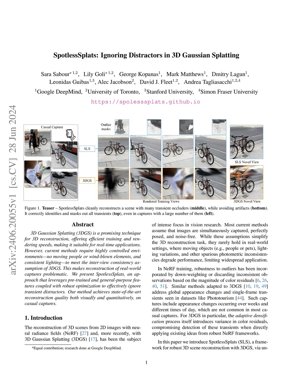 3D Gaussian Splatting (3DGS) is a promising technique for 3D reconstruction, offering efficient training and rendering speeds, making it suitable for real-time applications.However, current methods require highly controlled environments (no moving people or wind-blown elements, and consistent lighting) to meet the inter-view consistency assumption of 3DGS. This makes reconstruction of real-world captures problematic. We present SpotLessSplats, an approach that leverages pre-trained and general-purpose features coupled with robust optimization to effectively ignore transient distractors. Our method achieves state-of-the-art reconstruction quality both visually and quantitatively, on casual captures. Additional results available at: https://spotlesssplats.github.io