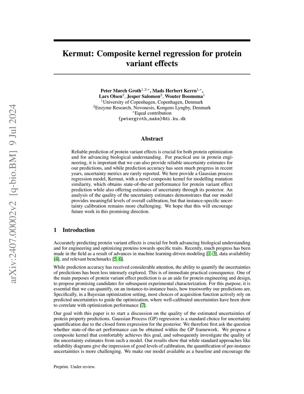 Reliable prediction of protein variant effects is crucial for both protein optimization and for advancing biological understanding. For practical use in protein engineering, it is important that we can also provide reliable uncertainty estimates for our predictions, and while prediction accuracy has seen much progress in recent years, uncertainty metrics are rarely reported. We here provide a Gaussian process regression model, Kermut, with a novel composite kernel for modelling mutation similarity, which obtains state-of-the-art performance for protein variant effect prediction while also offering estimates of uncertainty through its posterior. An analysis of the quality of the uncertainty estimates demonstrates that our model provides meaningful levels of overall calibration, but that instance-specific uncertainty calibration remains more challenging. We hope that this will encourage future work in this promising direction.