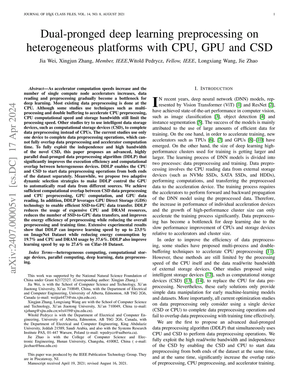 Dual-pronged deep learning preprocessing on heterogeneous platforms with