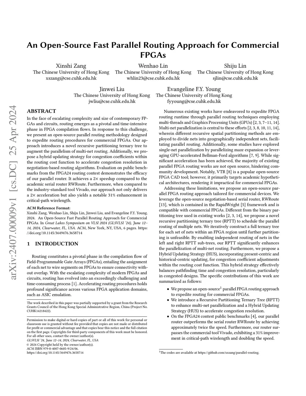 An Open-Source Fast Parallel Routing Approach for Commercial FPGAs