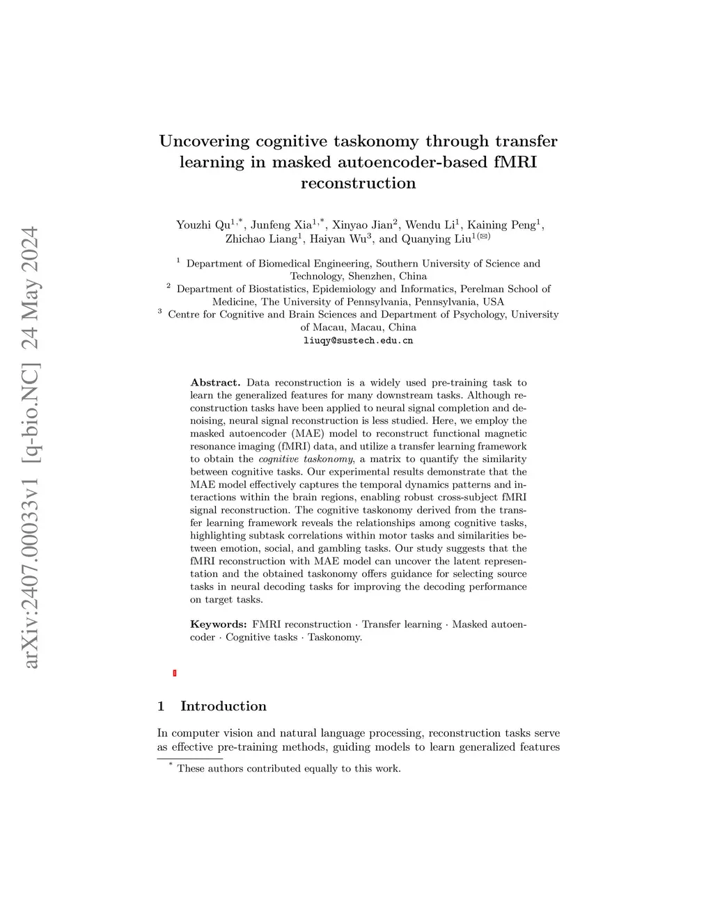 Uncovering cognitive taskonomy through transfer learning in masked