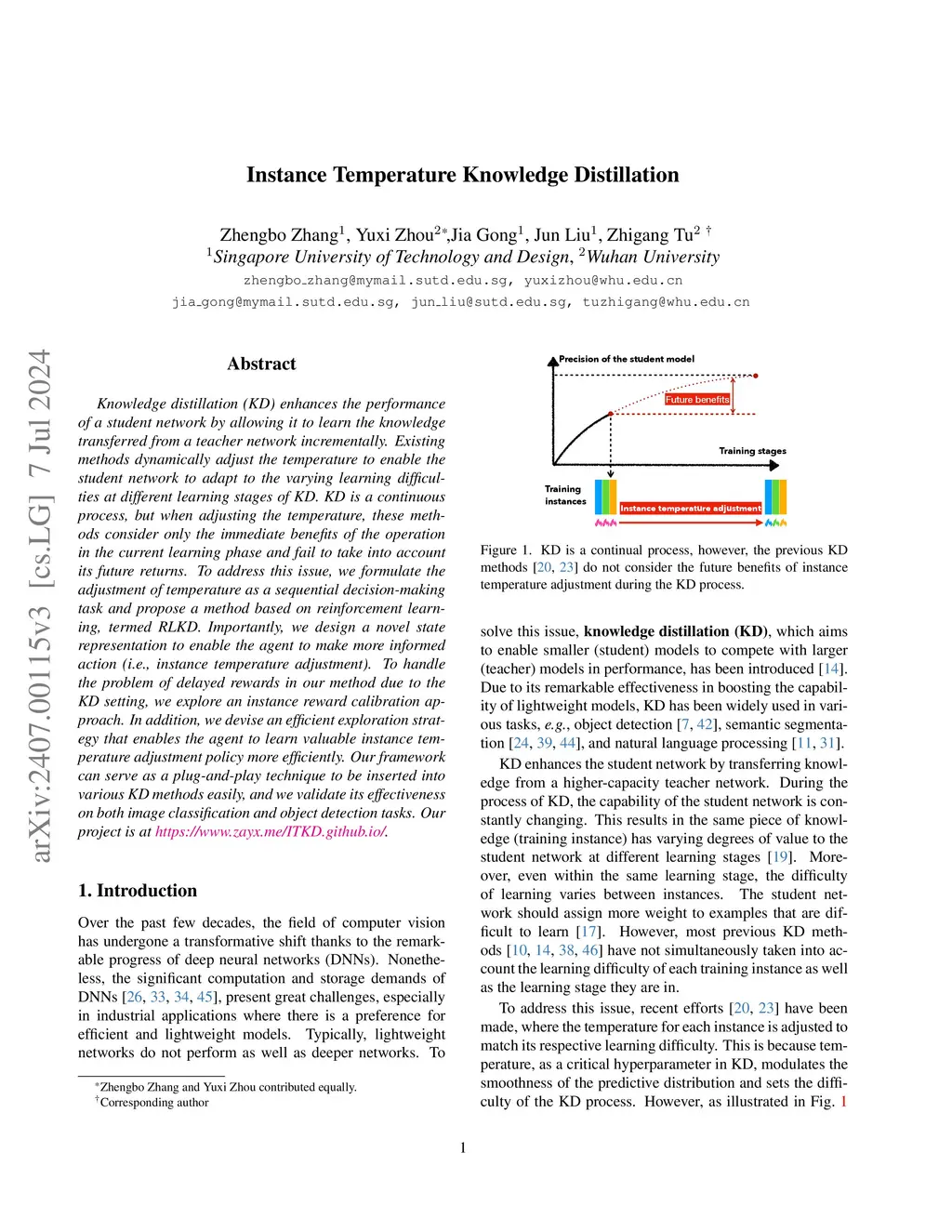 Instance Temperature Knowledge Distillation