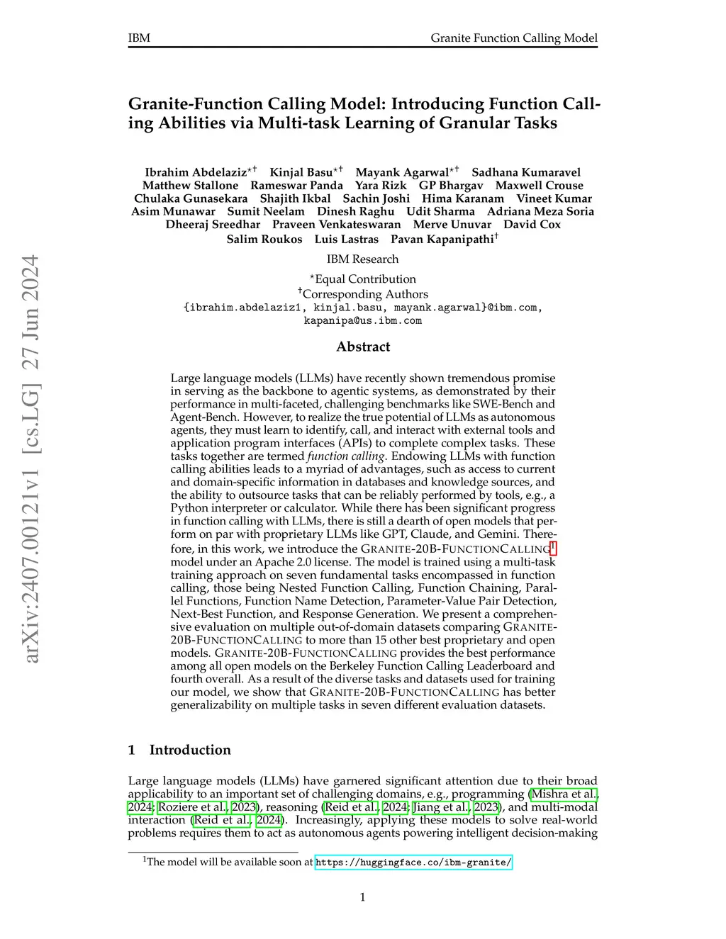 Granite-Function Calling Model: Introducing Function Calling Abilities