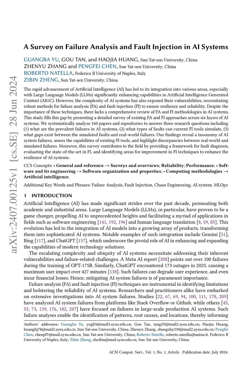 A Survey on Failure Analysis and Fault Injection in AI Systems