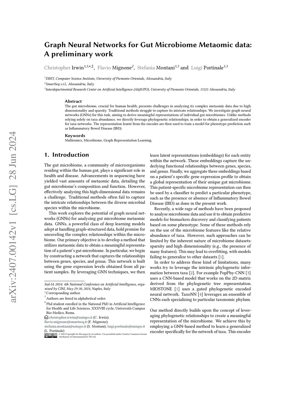 Graph Neural Networks for Gut Microbiome Metaomic data: A preliminary