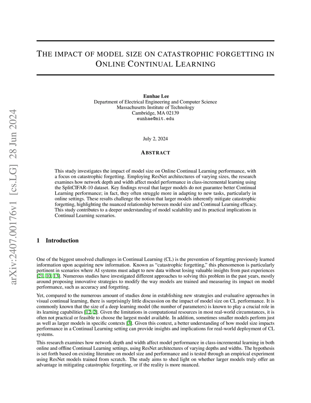 This study investigates the impact of model size on Online Continual Learning performance, with a focus on catastrophic forgetting. Employing ResNet architectures of varying sizes, the research examines how network depth and width affect model performance in class-incremental learning using the SplitCIFAR-10 dataset. Key findings reveal that larger models do not guarantee better Continual Learning performance; in fact, they often struggle more in adapting to new tasks, particularly in online settings. These results challenge the notion that larger models inherently mitigate catastrophic forgetting, highlighting the nuanced relationship between model size and Continual Learning efficacy. This study contributes to a deeper understanding of model scalability and its practical implications in Continual Learning scenarios.