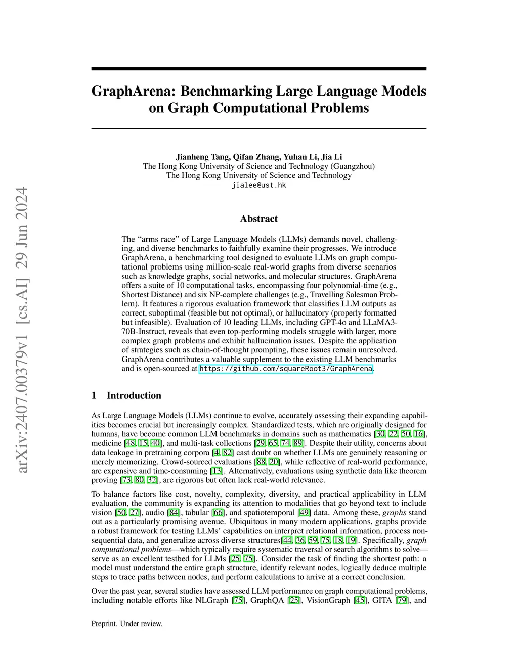 GraphArena: Evaluating and Exploring Large Language Models on Graph Computation