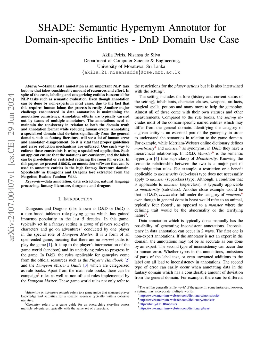 SHADE: Semantic Hypernym Annotator for Domain-specific Entities -- DnD