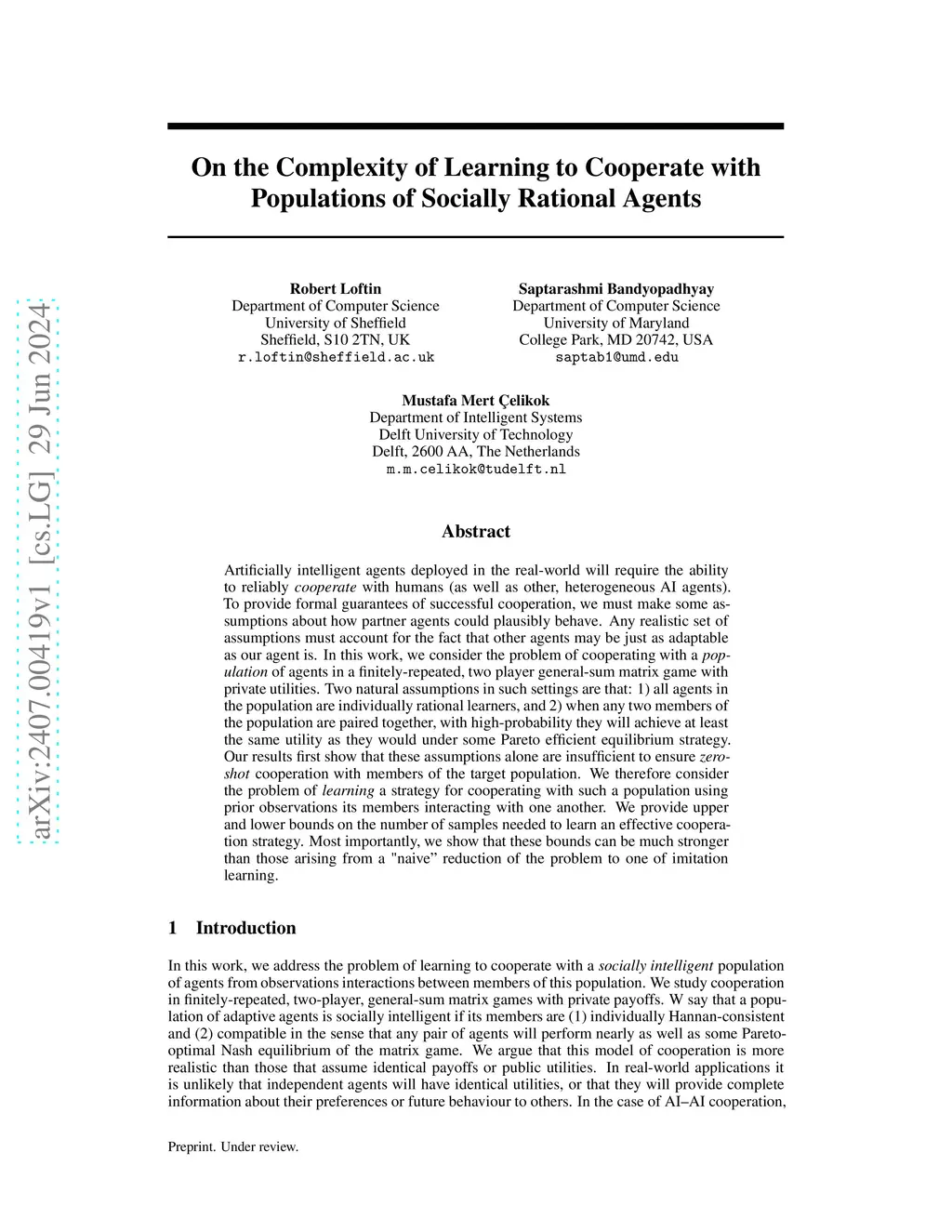 Artificially intelligent agents deployed in the real-world will require the ability to reliably \textit{cooperate} with humans (as well as other, heterogeneous AI agents). To provide formal guarantees of successful cooperation, we must make some assumptions about how partner agents could plausibly behave. Any realistic set of assumptions must account for the fact that other agents may be just as adaptable as our agent is. In this work, we consider the problem of cooperating with a \textit{population} of agents in a finitely-repeated, two player general-sum matrix game with private utilities. Two natural assumptions in such settings are that: 1) all agents in the population are individually rational learners, and 2) when any two members of the population are paired together, with high-probability they will achieve at least the same utility as they would under some Pareto efficient equilibrium strategy. Our results first show that these assumptions alone are insufficient to ensure \textit{zero-shot} cooperation with members of the target population. We therefore consider the problem of \textit{learning} a strategy for cooperating with such a population using prior observations its members interacting with one another. We provide upper and lower bounds on the number of samples needed to learn an effective cooperation strategy. Most importantly, we show that these bounds can be much stronger than those arising from a "naive'' reduction of the problem to one of imitation learning.