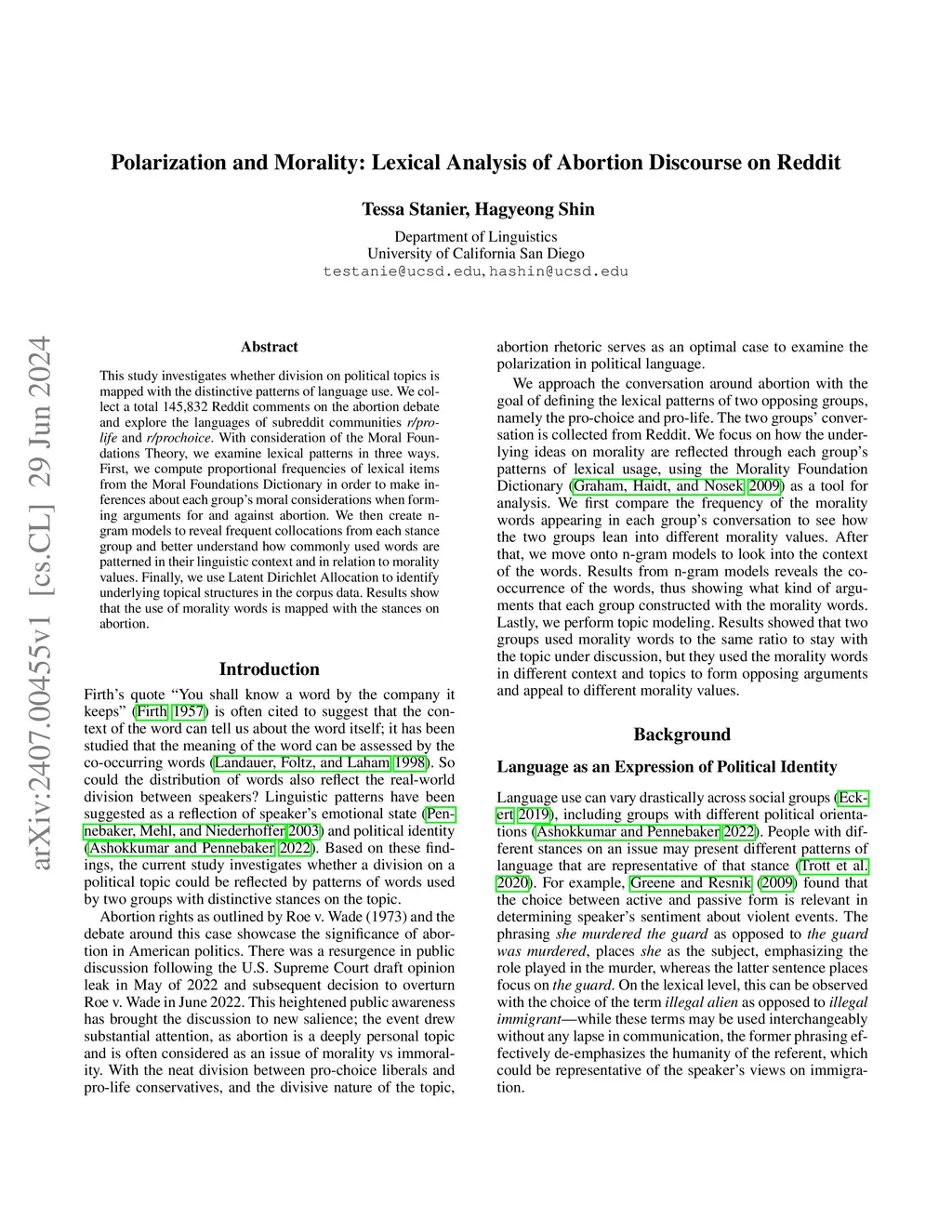 Polarization and Morality: Lexical Analysis of Abortion Discourse on