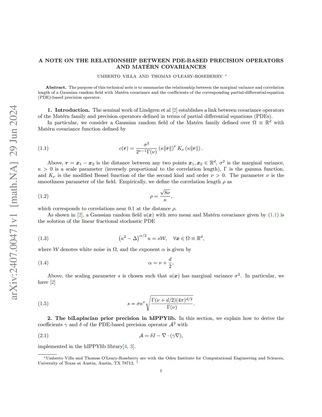 The purpose of this technical note is to summarize the relationship between the marginal variance and correlation length of a Gaussian random field with Mat\érn covariance and the coefficients of the corresponding partial-differential-equation (PDE)-based precision operator.
