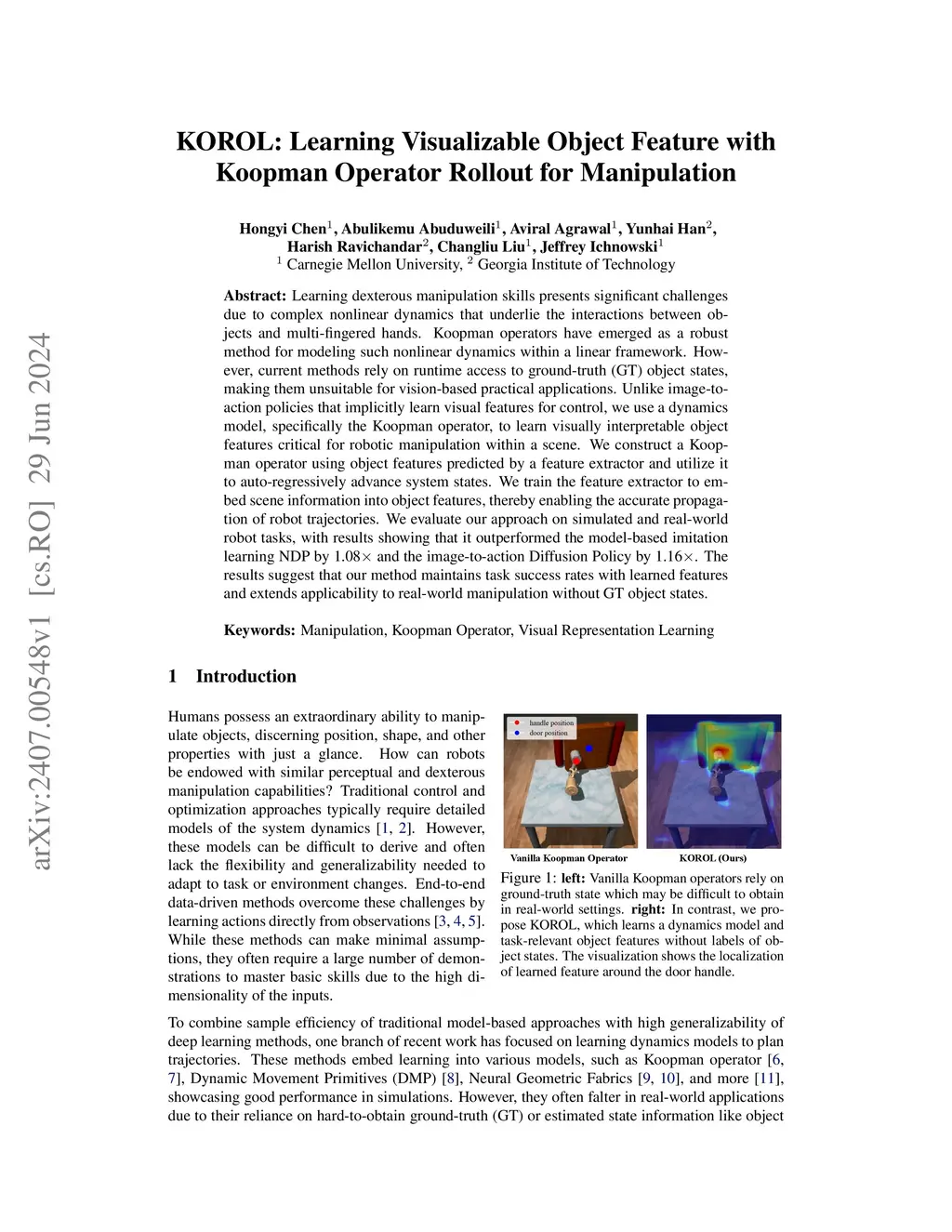 KOROL: Learning Visualizable Object Feature with Koopman Operator