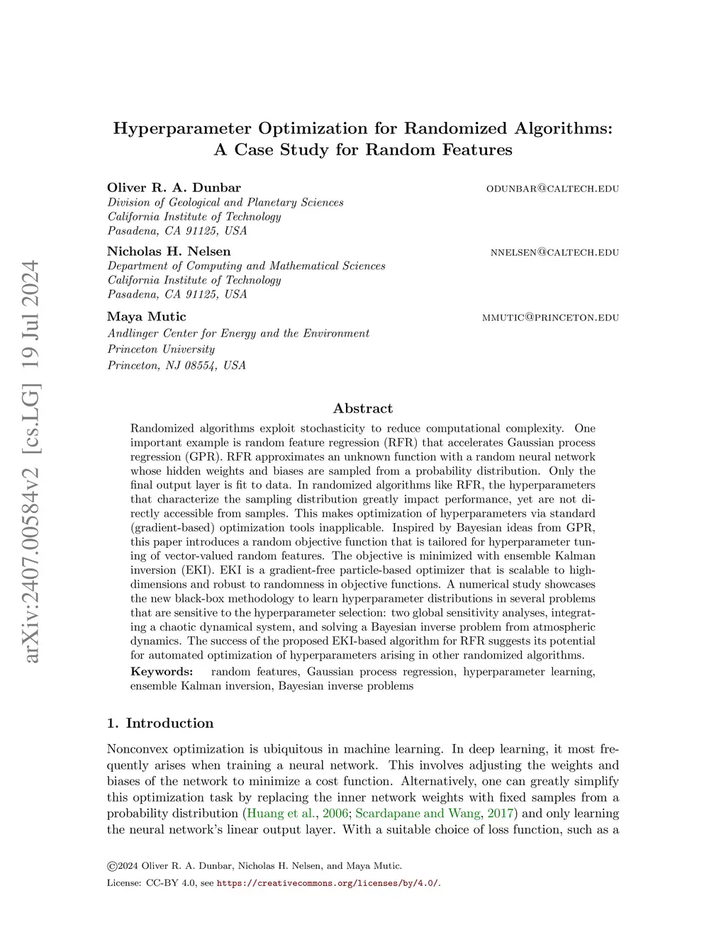 Hyperparameter Optimization for Randomized Algorithms: A Case Study on Random Features