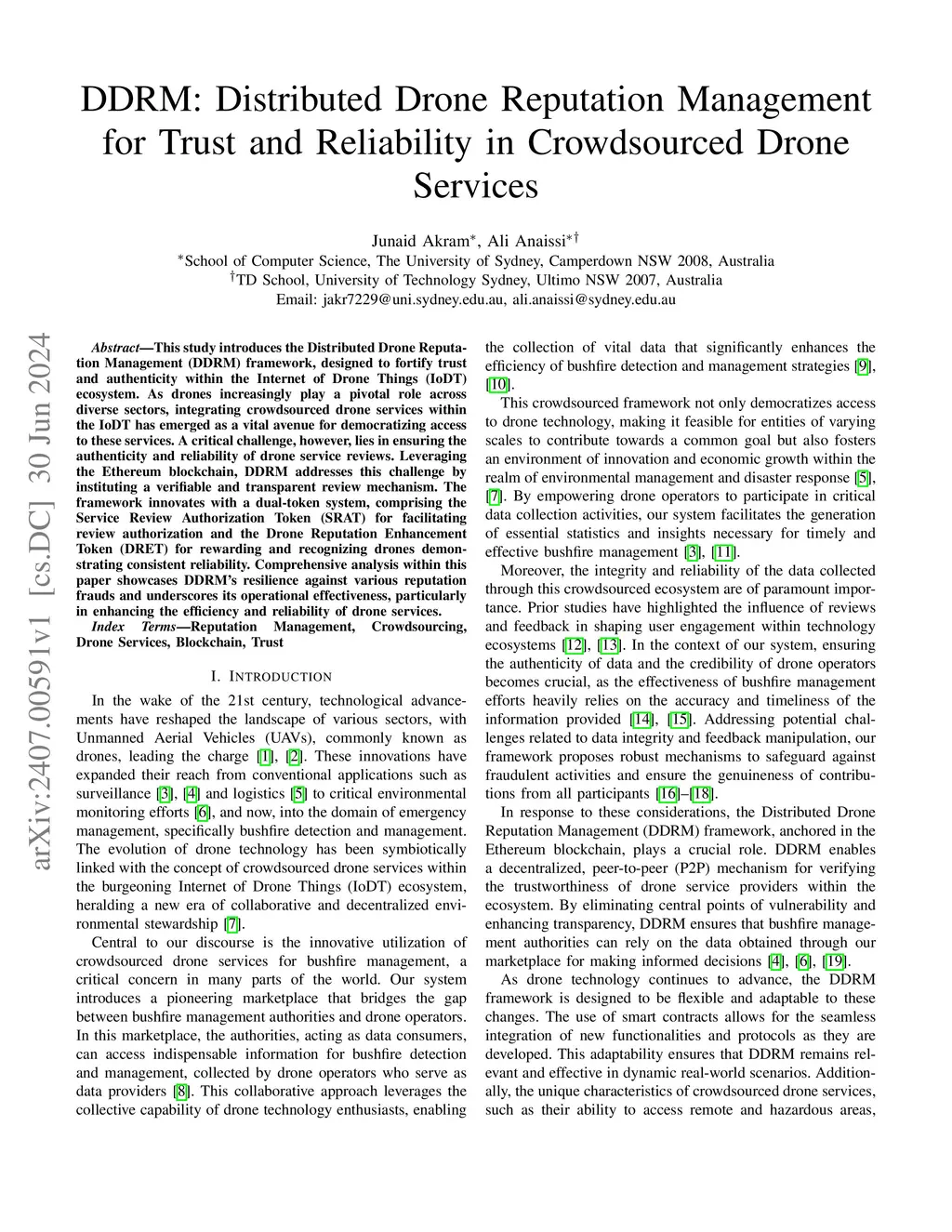 DDRM: Distributed Drone Reputation Management for Trust and Reliability