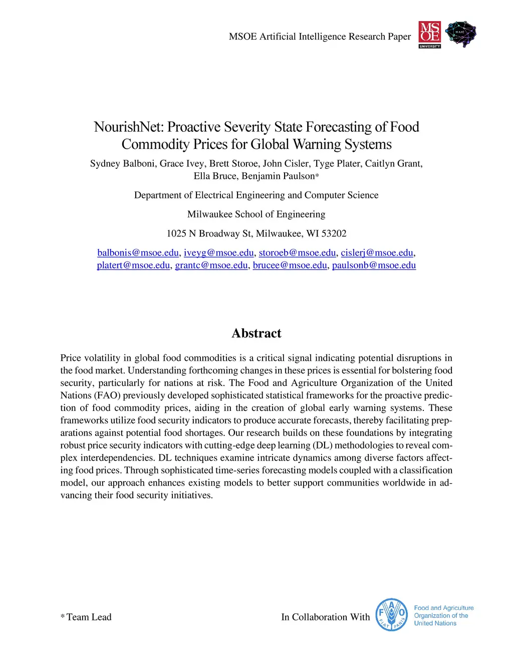 Price volatility in global food commodities is a critical signal indicating potential disruptions in the food market. Understanding forthcoming changes in these prices is essential for bolstering food security, particularly for nations at risk. The Food and Agriculture Organization of the United Nations (FAO) previously developed sophisticated statistical frameworks for the proactive prediction of food commodity prices, aiding in the creation of global early warning systems. These frameworks utilize food security indicators to produce accurate forecasts, thereby facilitating preparations against potential food shortages. Our research builds on these foundations by integrating robust price security indicators with cutting-edge deep learning (DL) methodologies to reveal complex interdependencies. DL techniques examine intricate dynamics among diverse factors affecting food prices. Through sophisticated time-series forecasting models coupled with a classification model, our approach enhances existing models to better support communities worldwide in advancing their food security initiatives.