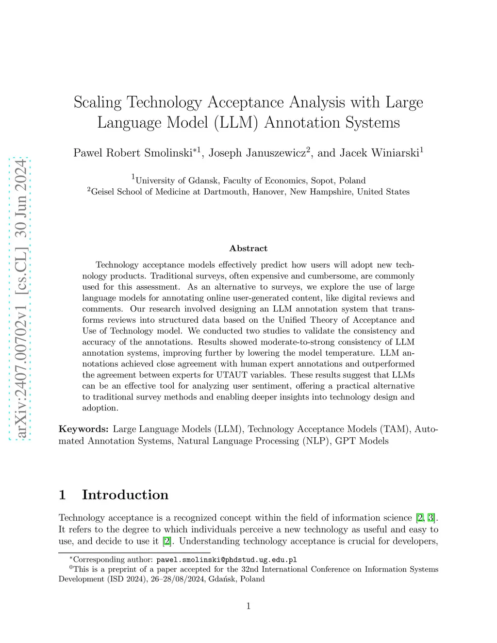 Scaling Technology Acceptance Analysis with Large Language Model (LLM)