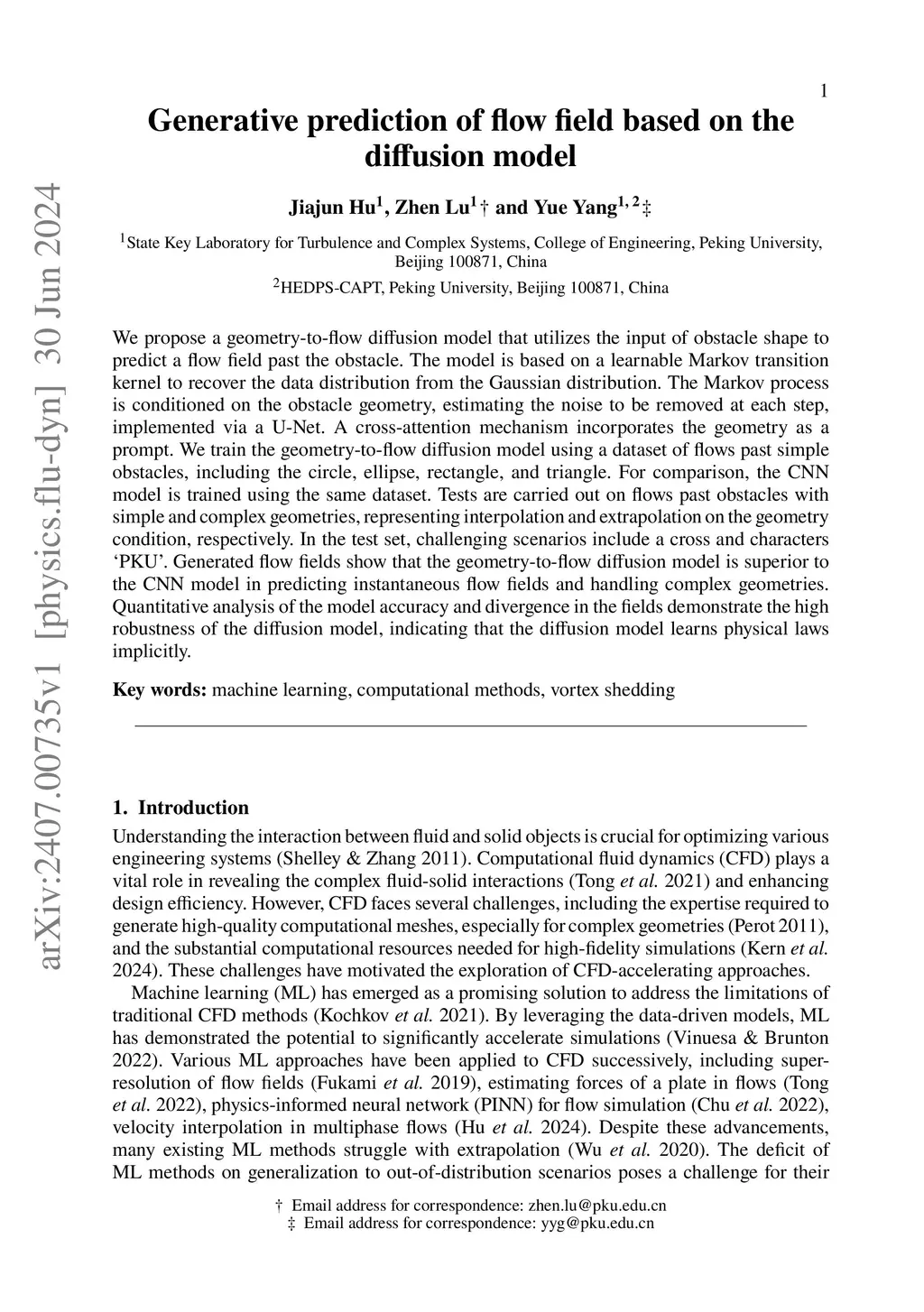 Generative prediction of flow fields around an obstacle using the diffusion model