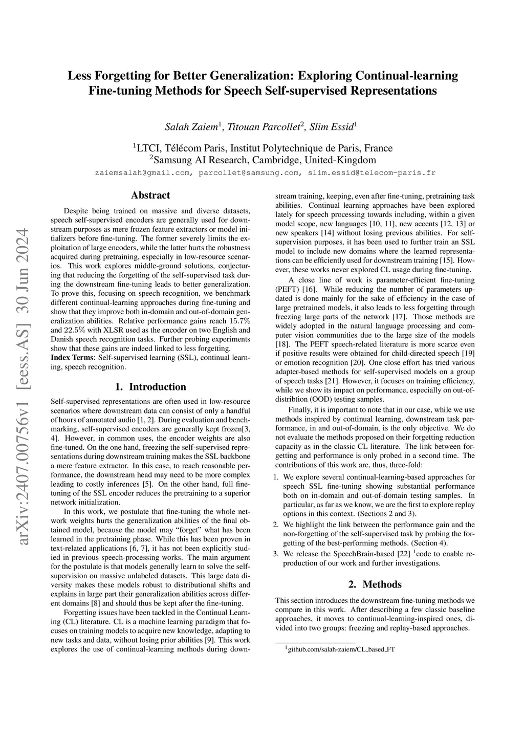 Fine-tuning Methods for Speech Self-supervised Representations